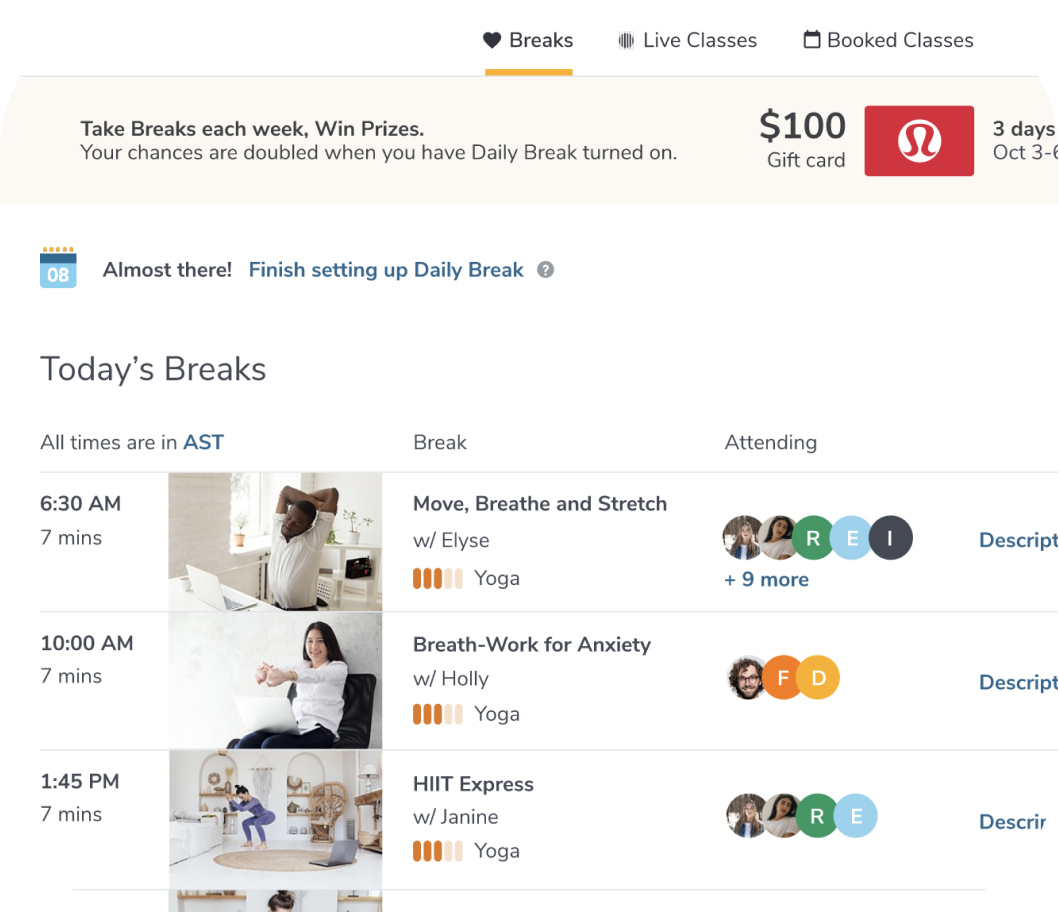 Bright Breaks offers optimal accessibility for teams in different locations or time zones. Our 250+ weekly breaks are spread throughout the day so employees can easily fit them into their schedules.