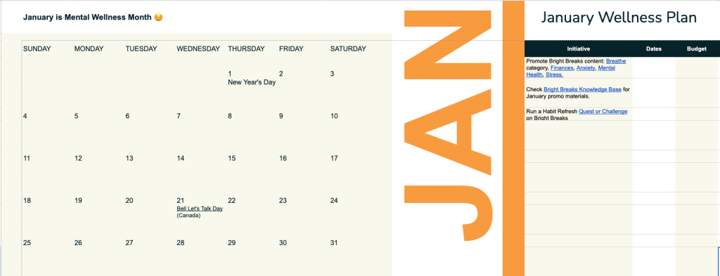 - Use the Monthly Promotional Resources to promote wellness themes and keep Bright Breaks top-of-mind