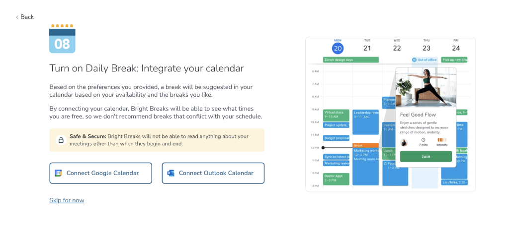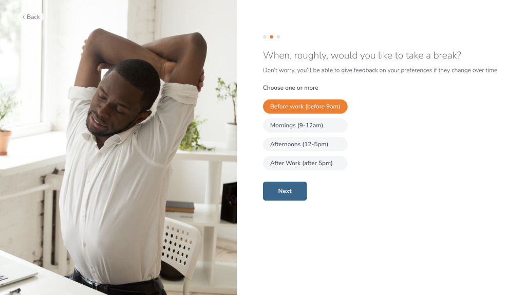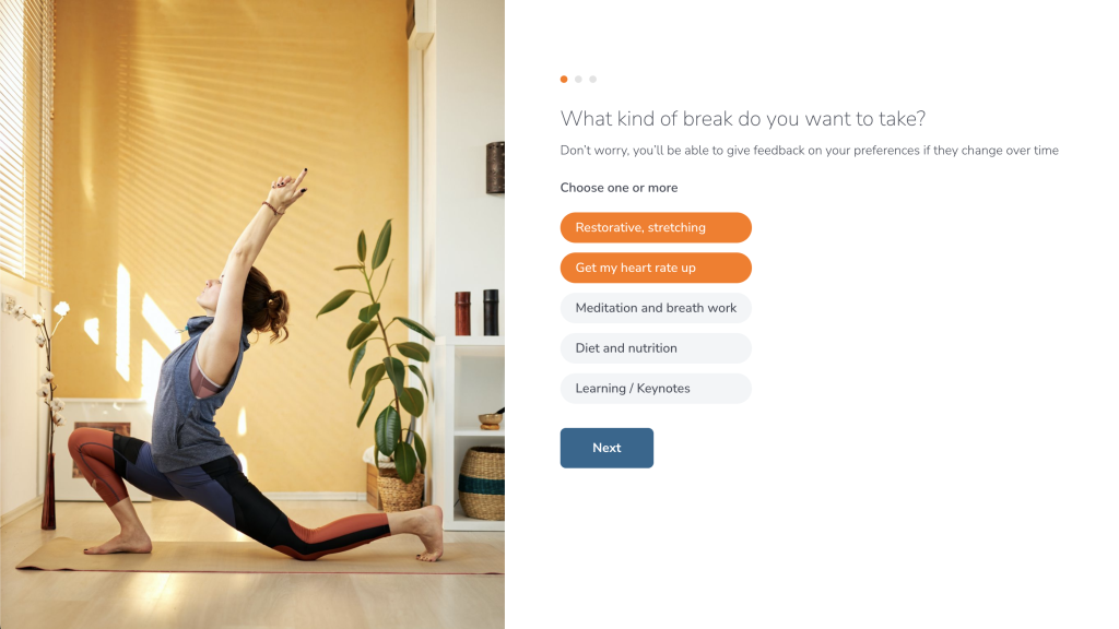 Let us know what types of breaks you’re interested in—like stretching, meditation or nutrition.