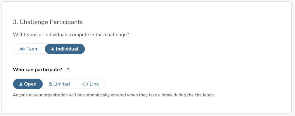 - If Individual is chosen, select your ‘Who can participate’ option to determine:
