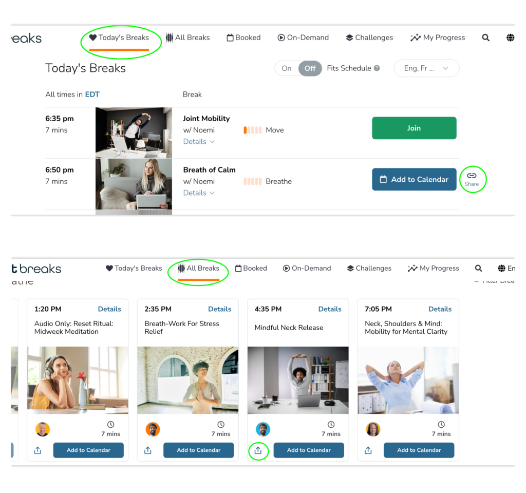 - Find the live break you’d like to invite others to in the Today’s Breaks or All Breaks tab.