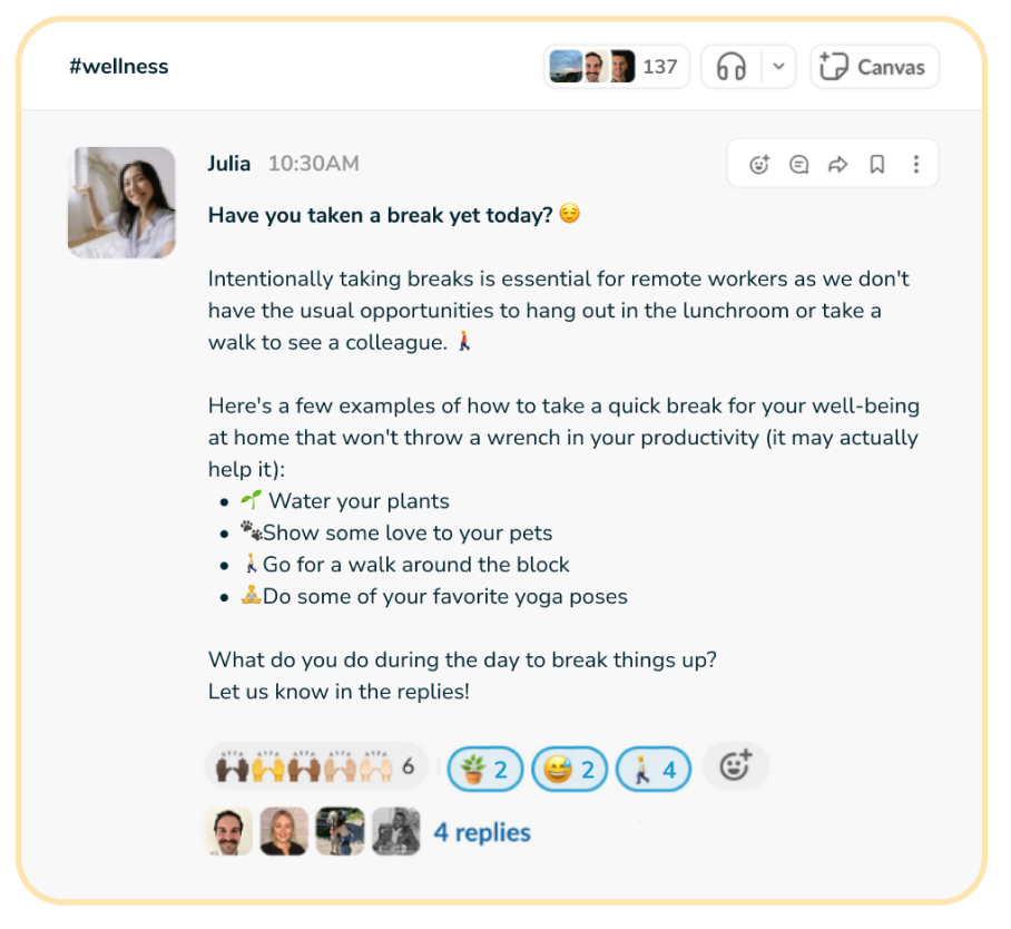 When promoting well-being within an organization, it’s important to start a discussion instead of just make an announcement. These resources encourage employees to react or comment to generate engagement.